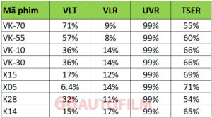 Phim cách nhiệt V-KOOL gồm có 9 mã phim và thông số các mã phim như sau :